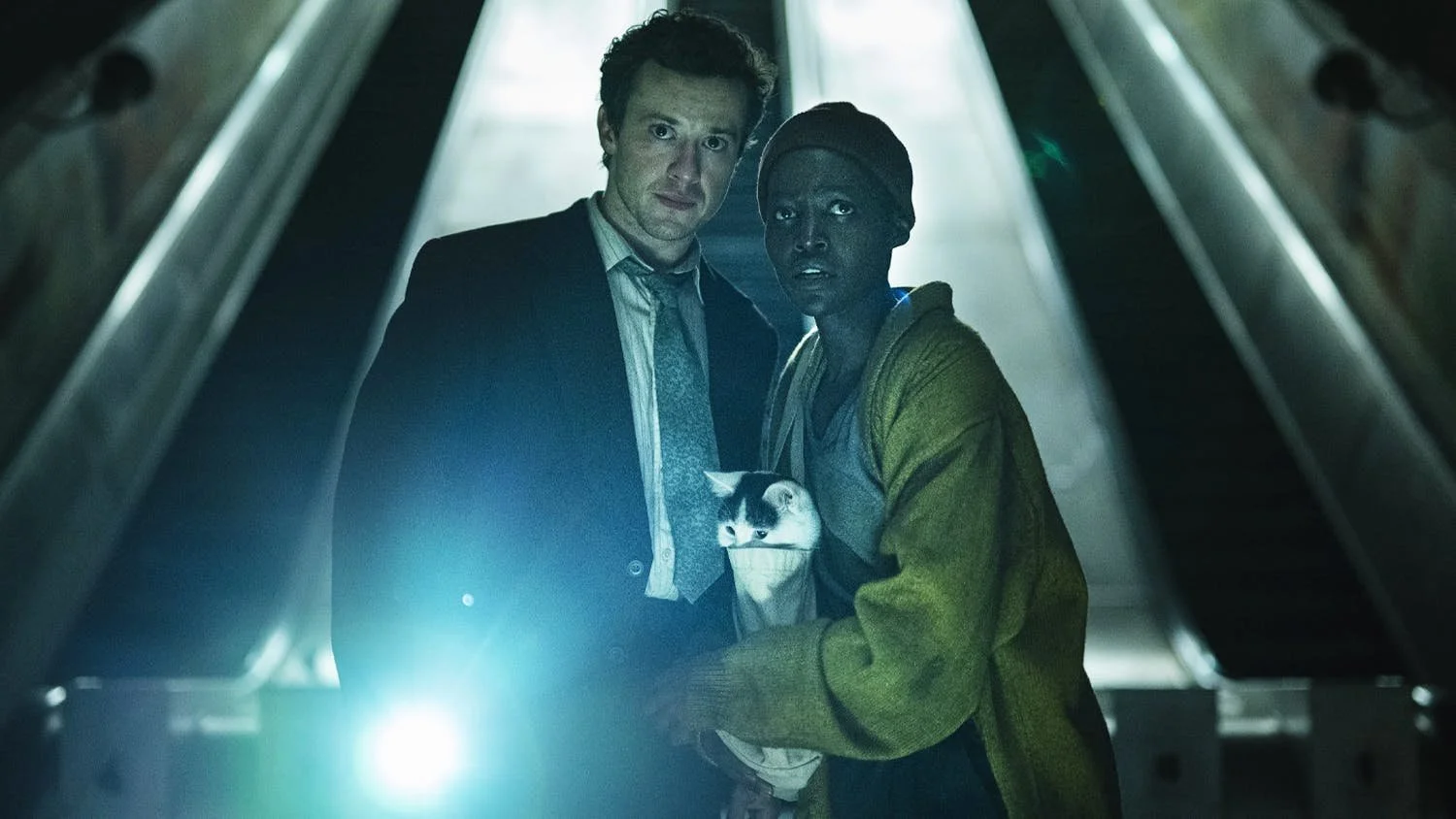 The action has been relocated to New York, a city where we are informed the volume level is that of a constant scream. Amidst the urban cacophony we meet Lupita Nyong’o’s Sam, a terminally ill poet finding herself in the city on a day trip from her hospice with her support cat Frodo. Soon the pair find themselves in a battle for survival as the city comes under attack and is overrun by the vicious arachnid-like creatures who are all too eager to rip apart anything that makes any noise louder than a pin dropping. As Sam makes her own way away from the crowds of survivors shuffling slowly out of the city for her own reasons, she meets Joseph Quinn’s Eric, a shell shocked English law student who tags along not knowing what else to do.